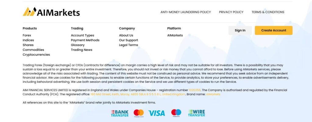 Основная информация о AIMarkets брокер