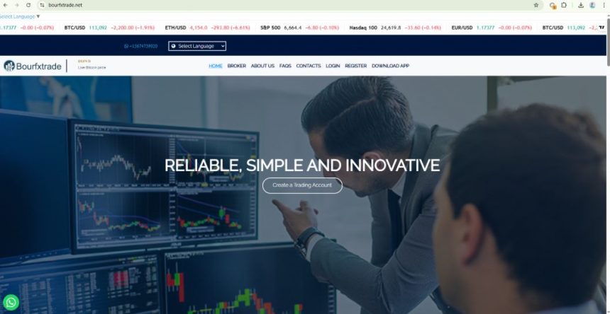 Bourfxtrade (bourfxtrade.net) не сообщает, какое программное обеспечение используется. Нет сведений о MetaTrader, cTrader или других известных системах. Регистрация и вход на сайт могут вызывать ошибки. Некоторые пользователи отмечают проблемы с подтверждением аккаунта.
