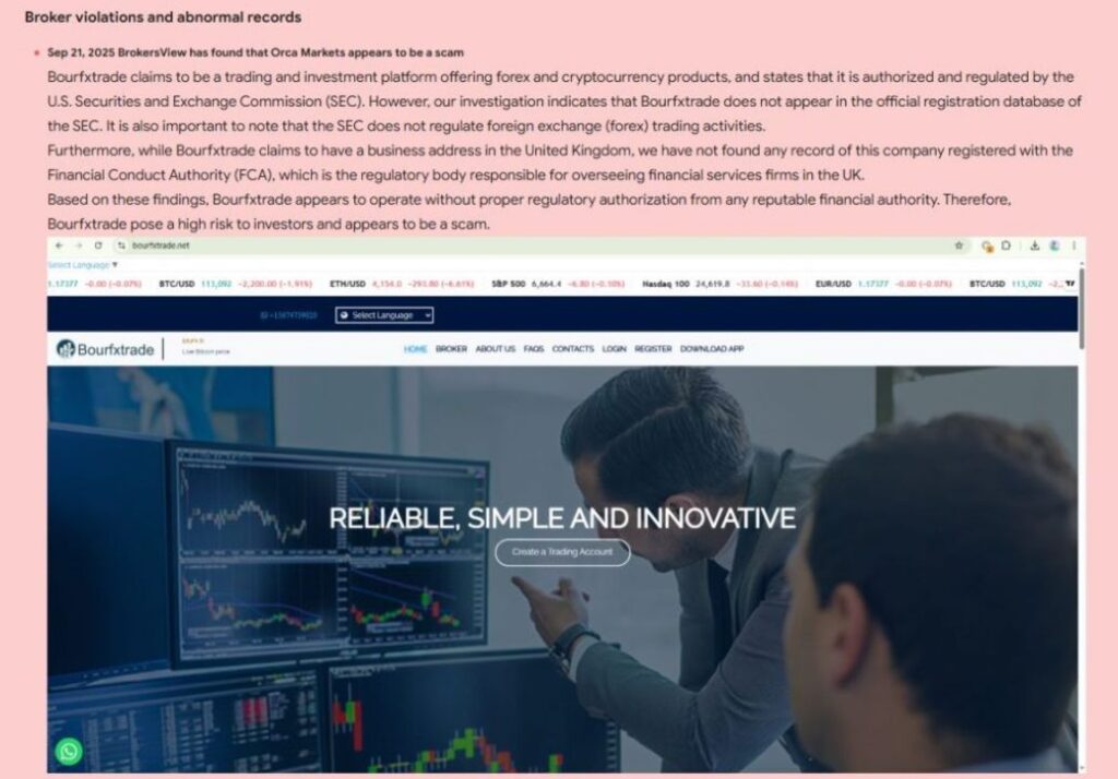 Bourfxtrade брокер мошенник, действующий по типичной схеме. Клиенту обещают быструю прибыль и безопасную торговлю. После внесения депозита на счёт прибыль показывается только на экране. При попытке вывода начинаются отговорки и блокировки. Затем представители компании полностью прекращают общение.