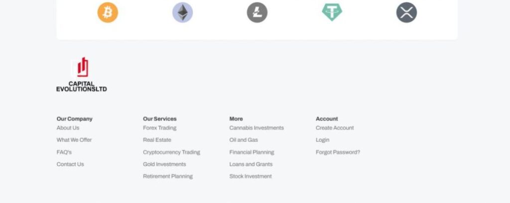 Capital Evolutions LTD позиционирует себя как организация, работающая с форекс и криптоактивами.