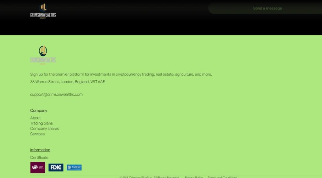Crimson Wealths (crimsonwealths.com) позиционирует себя как брокера с международной клиентской базой.