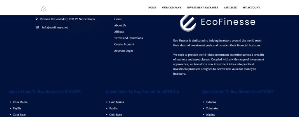 Платформа EcoFinesse называет себя брокером для онлайн-инвестиций.