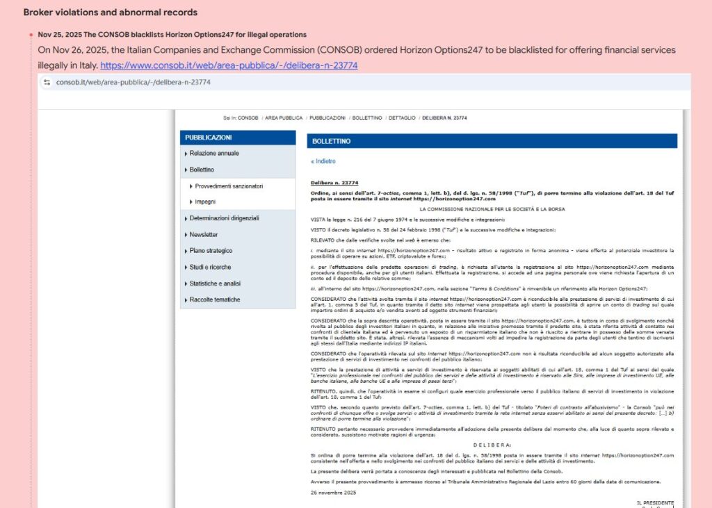 В целом репутация HorizonOption247 остаётся сомнительной и рискованной.