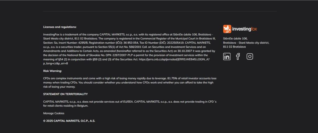 На своём сайте InvestingFox брокер описывает себя как надёжную и инновационную компанию. Клиентам обещают удобный доступ к рынкам и современный торговый сервис. При этом подробных сведений о владельцах и реальном офисе почти нет.