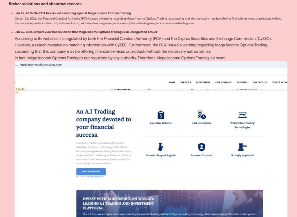 MegaIncomeOptionsTrading (megaincomeoptionstrading.com) позиционирует себя как брокера для онлайн-трейдинга.