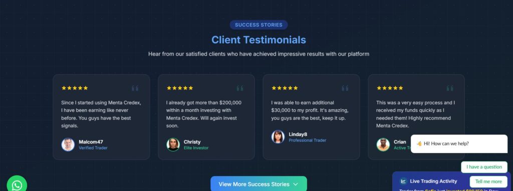 Menta Credex (mentacredex.com) позиционирует себя как международную инвестиционную платформу. На сайте обещают быстрый доступ к финансовым рынкам и надёжную поддержку. Однако домен зарегистрирован совсем недавно. Это противоречит заявлению о многолетнем опыте. Также отсутствуют реальные сведения о владельцах и юридическом адресе компании. Подобная закрытость уже вызывает серьёзные сомнения в прозрачности работы брокера.