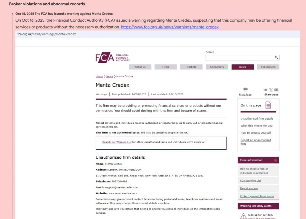 Menta Credex (mentacredex.com) — опасный брокер с признаками мошенничества. Компания не регулируется, скрывает важные данные и получает негативные отзывы. Риск потери капитала здесь очень высок. Эксперты советуют избегать этой платформы и работать только с проверенными брокерами, которые имеют официальные лицензии и реальную историю деятельности.