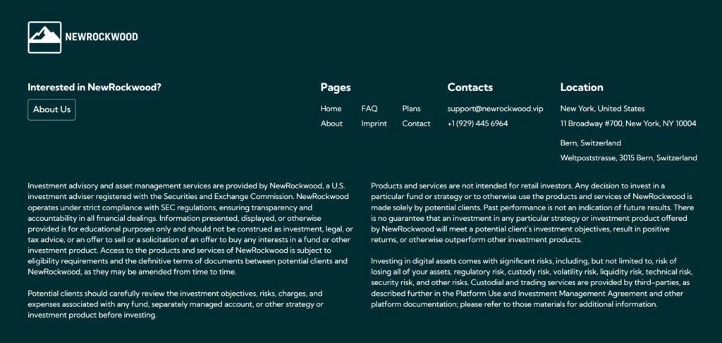 NewRockwood позиционирует себя как торговая платформа для частных инвесторов.