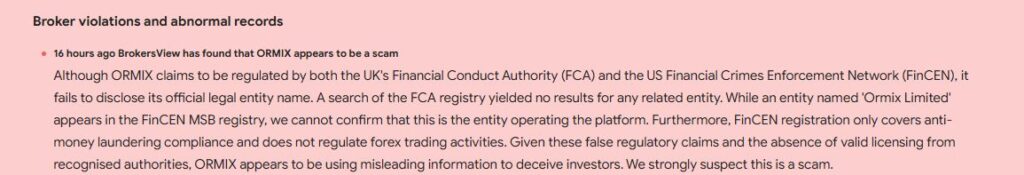 Мы не рекомендуем выбирать Ormix брокер для инвестиций.