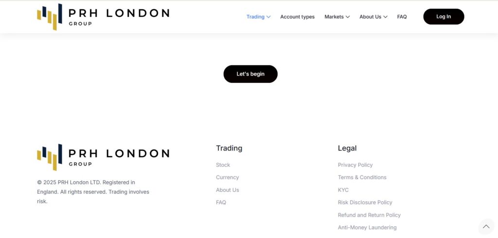 PRH London (prhlondon.com) — сомнительная компания с признаками мошенничества. У брокера нет лицензии, прозрачности и доверия клиентов. Работа с ним опасна и может привести к потере средств. Лучше выбирать регулируемых брокеров с лицензией и доказанной репутацией.