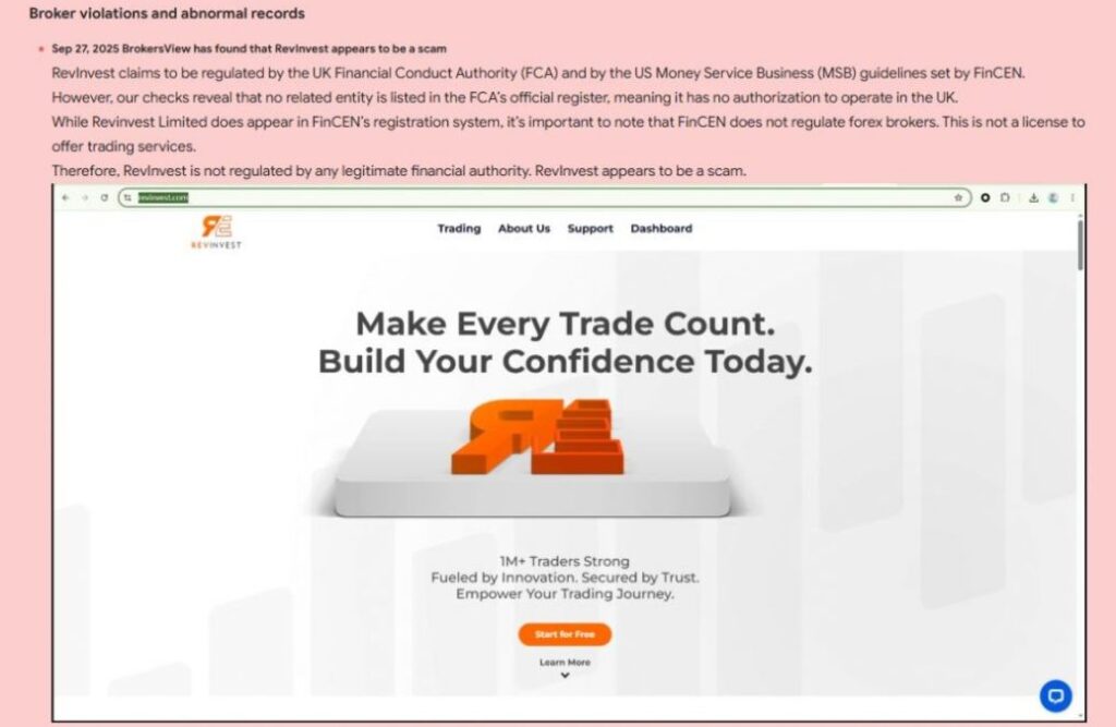RevInvest заявляет, что работает легально под контролем компетентных органов.