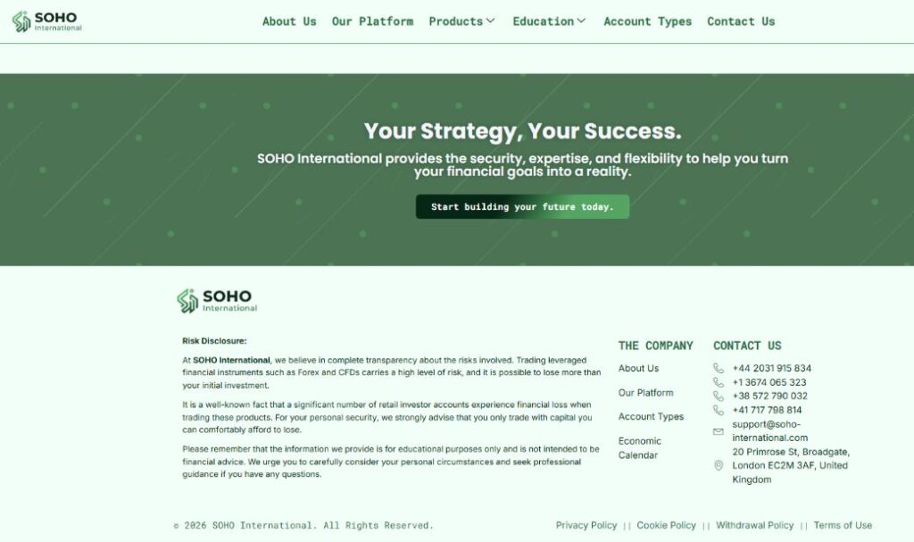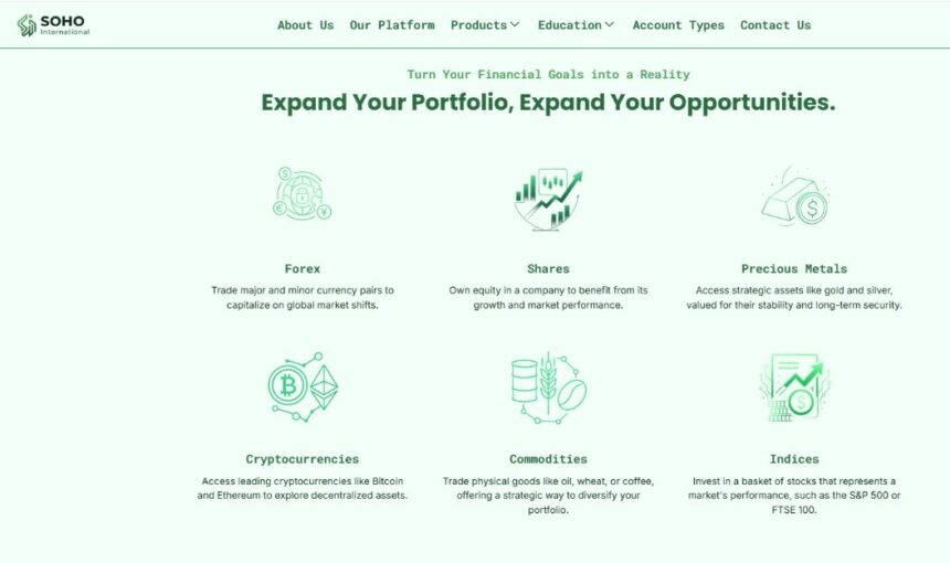Soho International (soho‑international.com) позиционирует себя как международная торговая платформа.