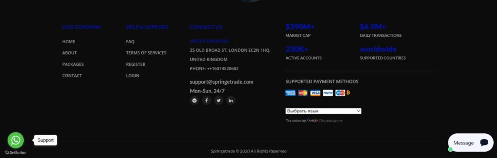 SpringeTrade позиционирует себя как современную онлайн-платформу для торговли.