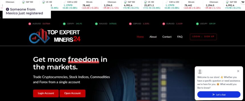 TopExpertMiners24 (topexpertminers24.live) представляет себя как брокер для криптовалютной торговли.