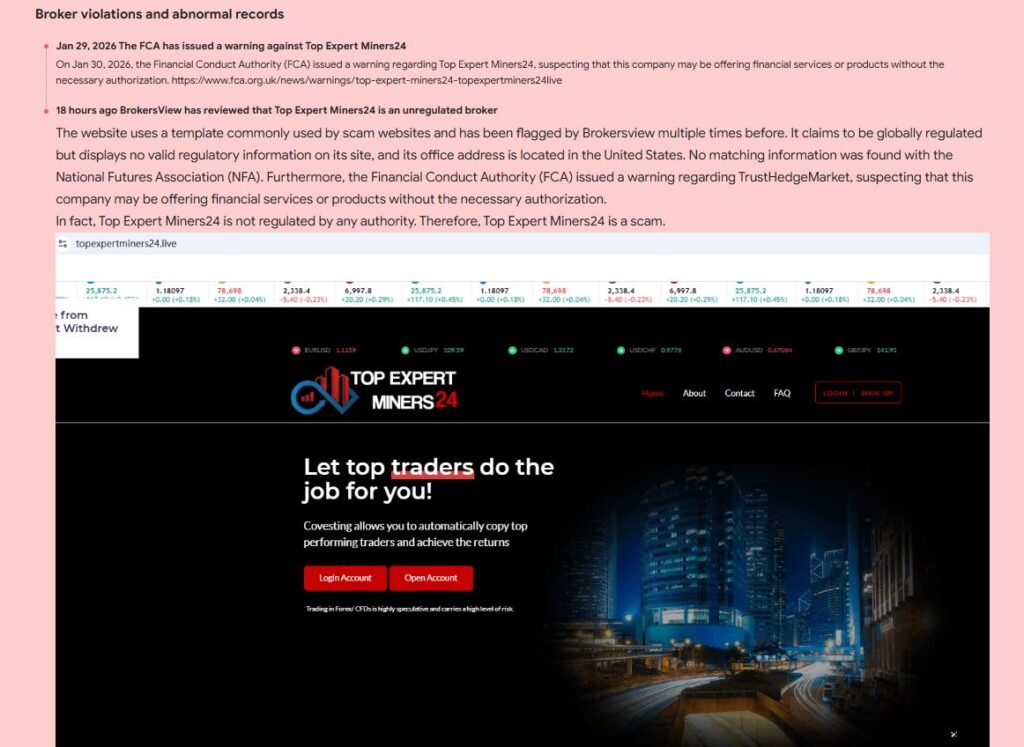 TopExpertMiners24 (topexpertminers24.live) вызывает обоснованные опасения.