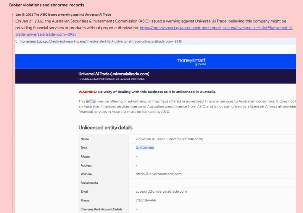 Поэтому формулировка Universal AI Trade мошенник выглядит оправданной.