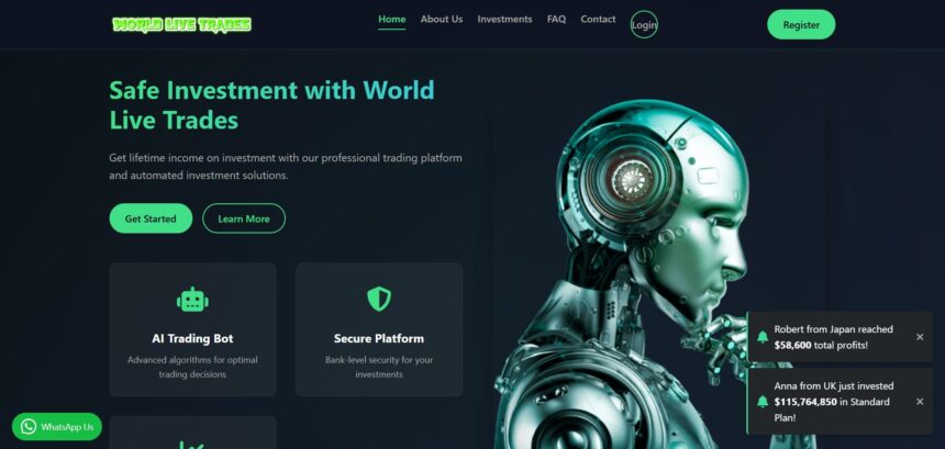 WorldLiveTrade заявляет, что использует искусственный интеллект для автоматической торговли. Однако подробностей о платформе нет. Не указано, кто разработчик и где проходят сделки. Клиенты сообщают о проблемах с доступом и отсутствии поддержки. Похоже, платформа существует только для сбора депозитов, а не для реальной торговли.